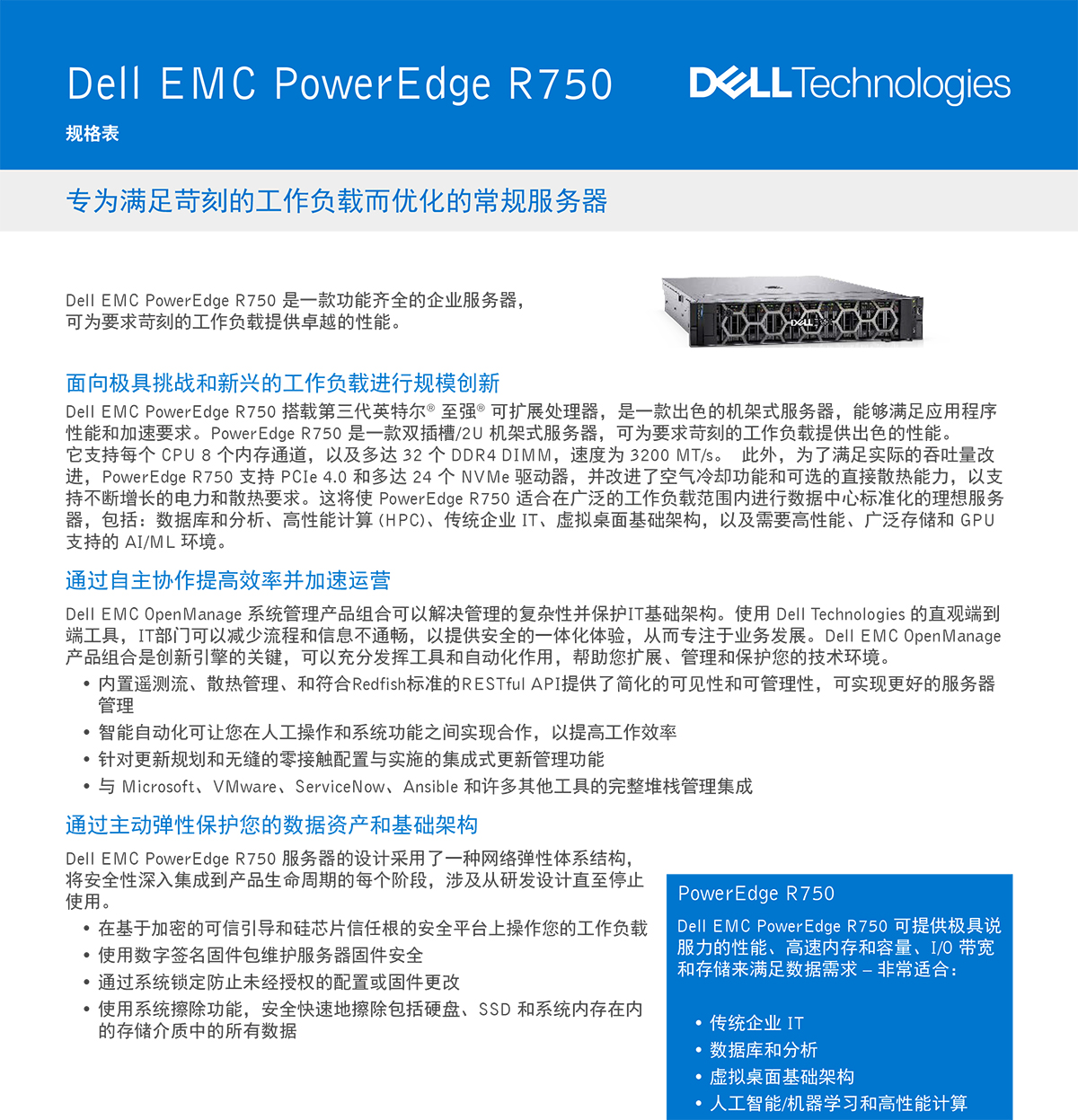 | 服务器型号 | DELL PowerEdge R750 | 外形/高度 | 机架式服务器(2U) |