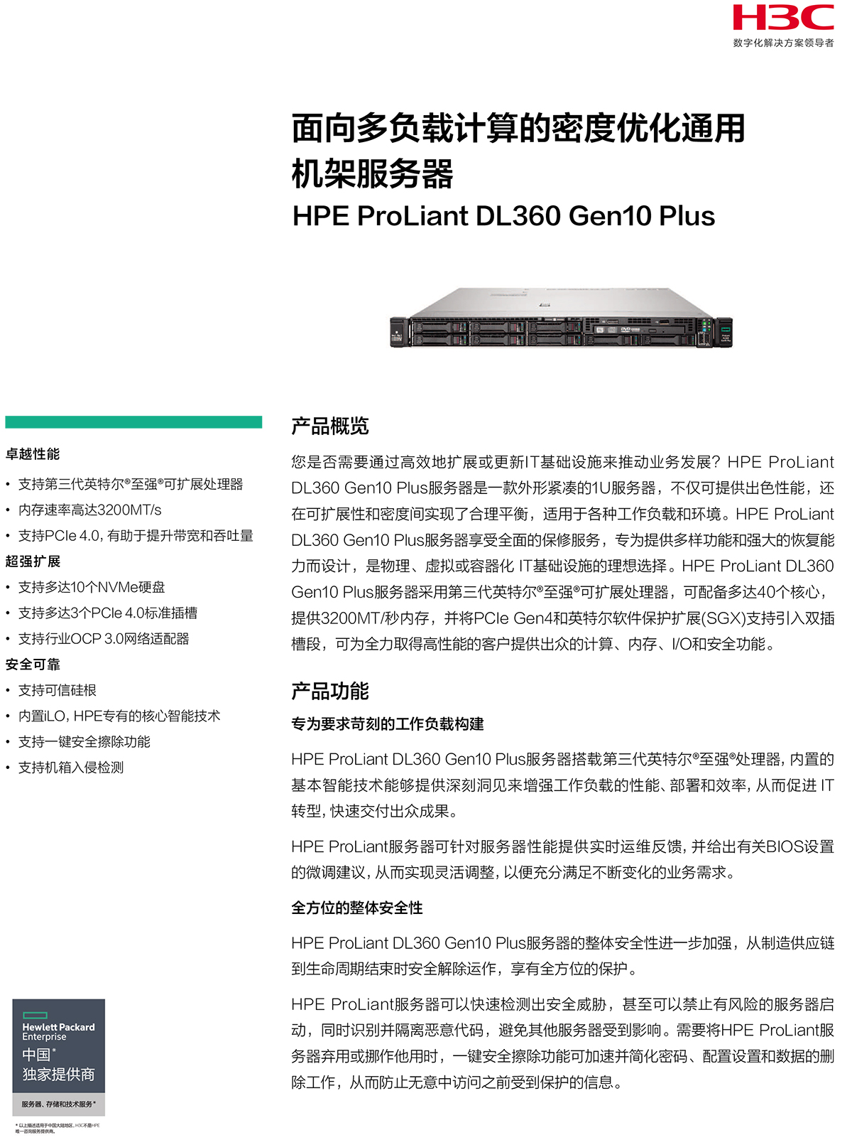 支持的操作系统 Windows、Red Hat、VMware等 保修政策 渠道销售预配置(BTO)机型:3年5x9下一工作日响应