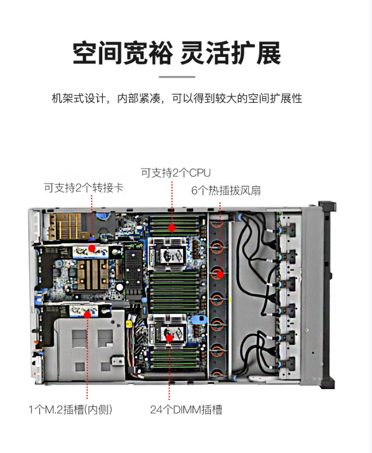 | 处理器 | 最多2个第二代英特尔“至强“可扩展处理器,最高可达205W | 内存 | 24个DDR4内存插槽 |
