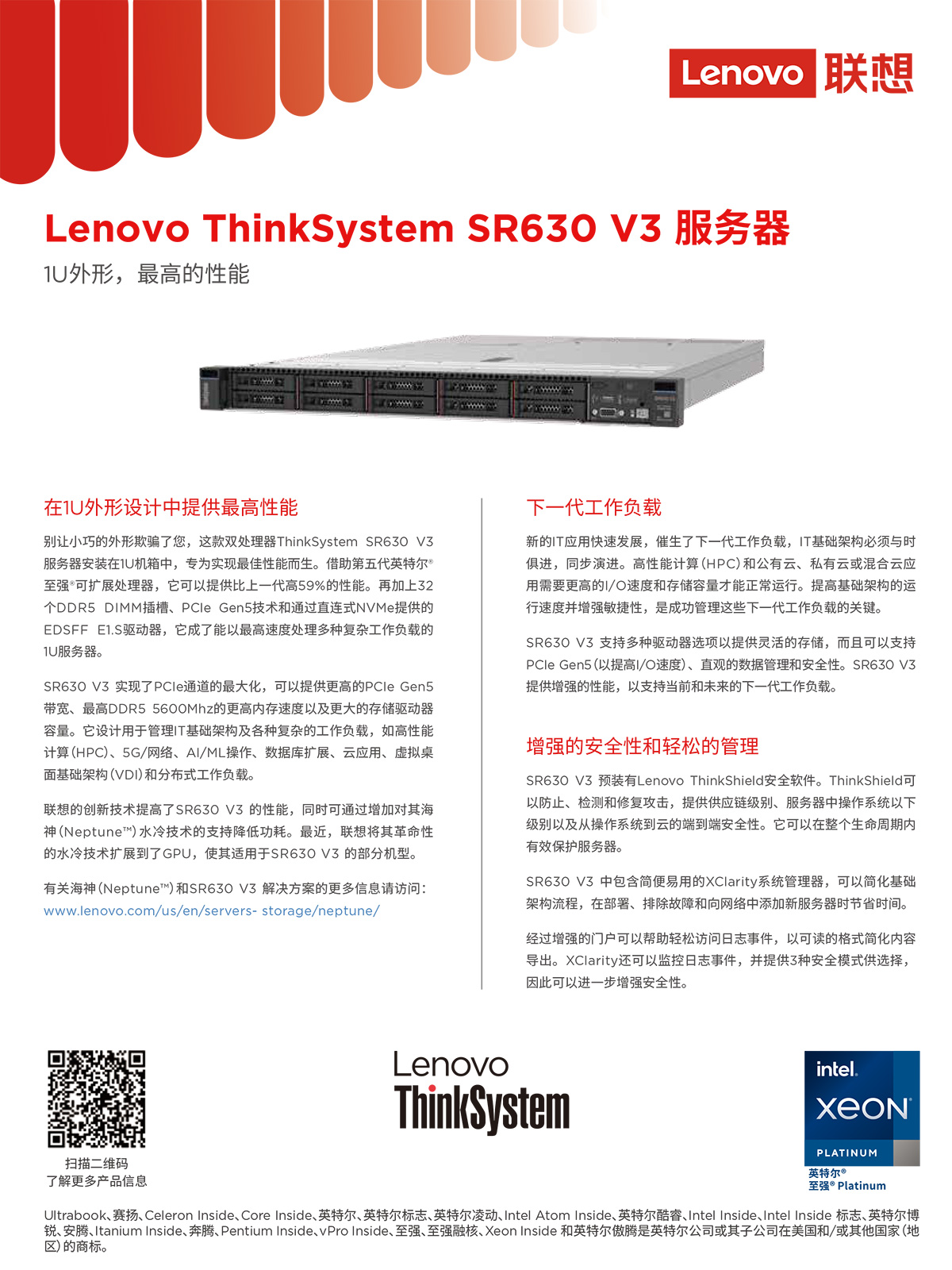 | 服务器型号 | ThinkSystem SR630 V3 | 外形/高度 | 机架式服务器(1U) |