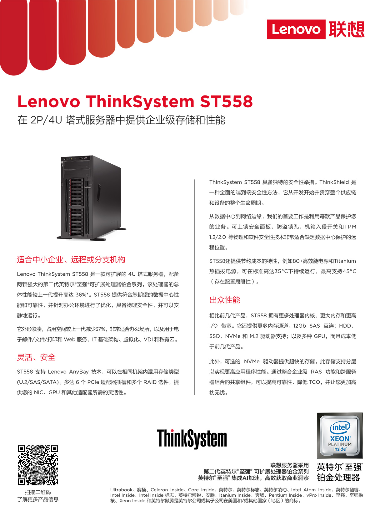 | 服务器型号 | ThinkSystem ST558 | 外形/高度 | 塔式服务器(4U) |